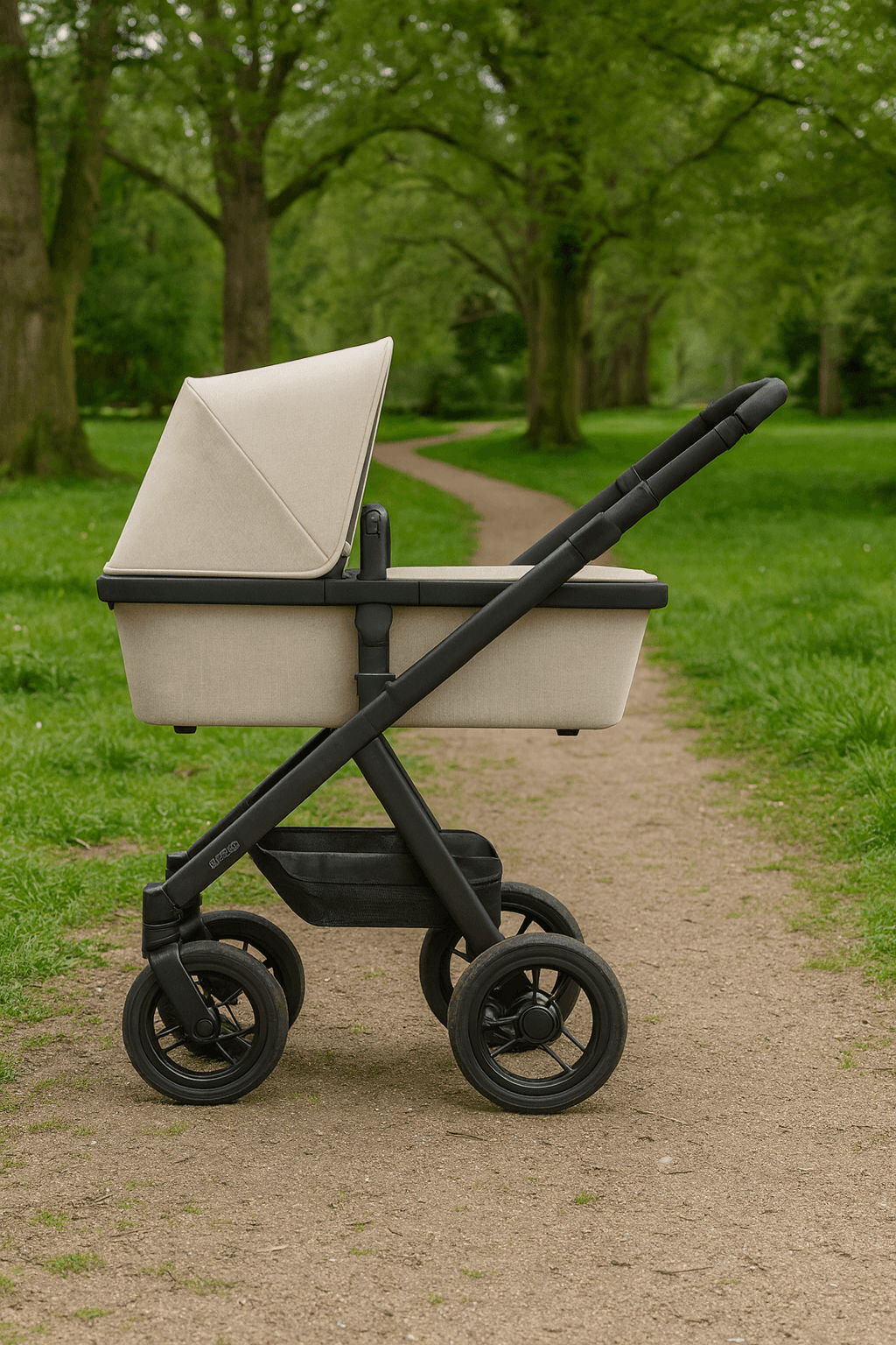 Wat dit model leuk maakt: je kunt framekleur, basisbekleding én aanvullende stoffering kiezen uit meerdere kleuren. Zelfs de wielen kun je naar smaak samenstellen. Wil je iets stoers, elegant, klassiek of juist opvallend? Met de verschillende combinaties is het mogelijk jouw kinderwagen echt persoonlijk te maken.